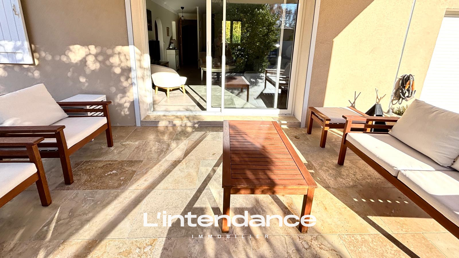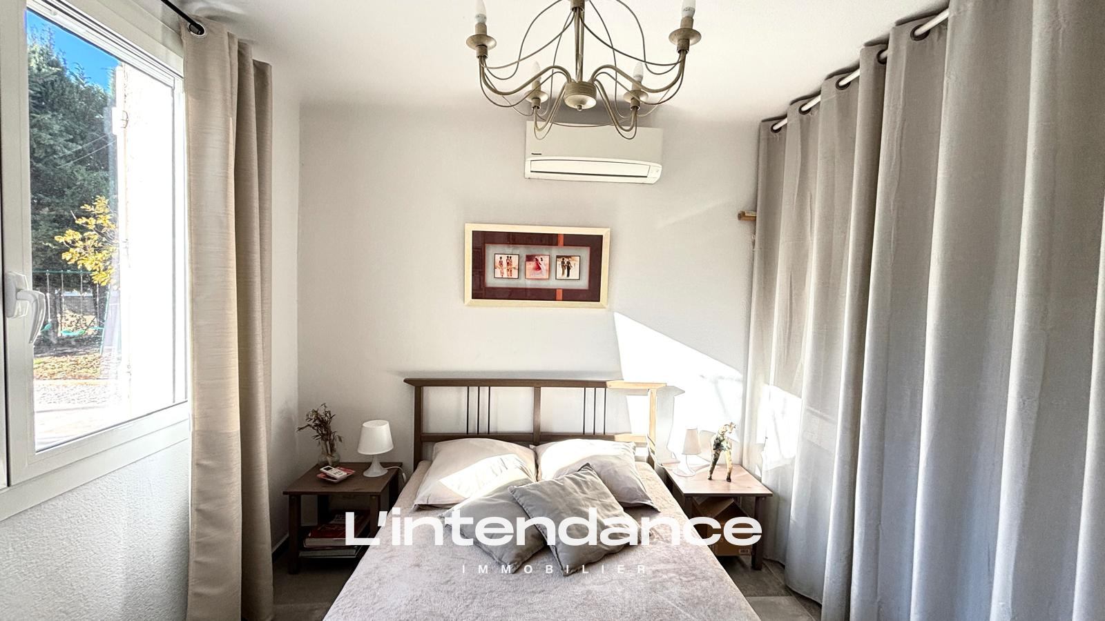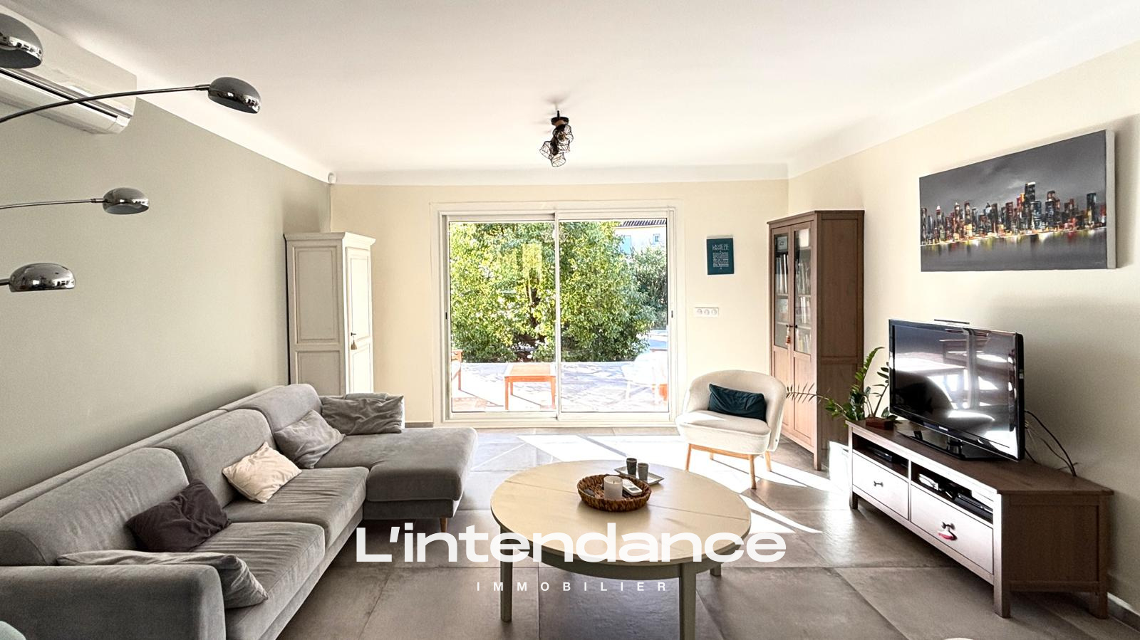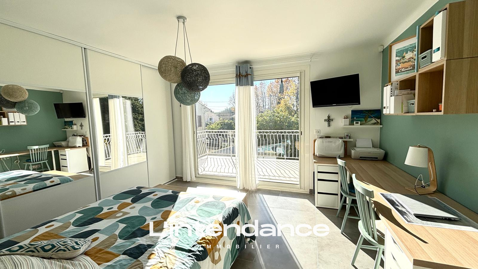 Dès l’entrée, un espace fonctionnel avec rangements et cellier.La pièce de vie lumineuse de 30 m², climatisée et équipée d’un poêle à granulés.Le séjour s’ouvre sur une grande terrasse de 100 m².