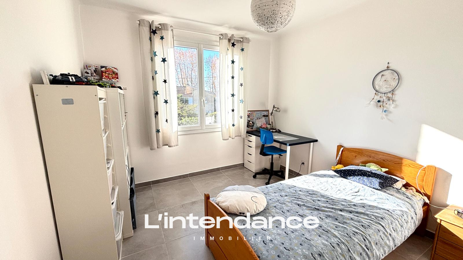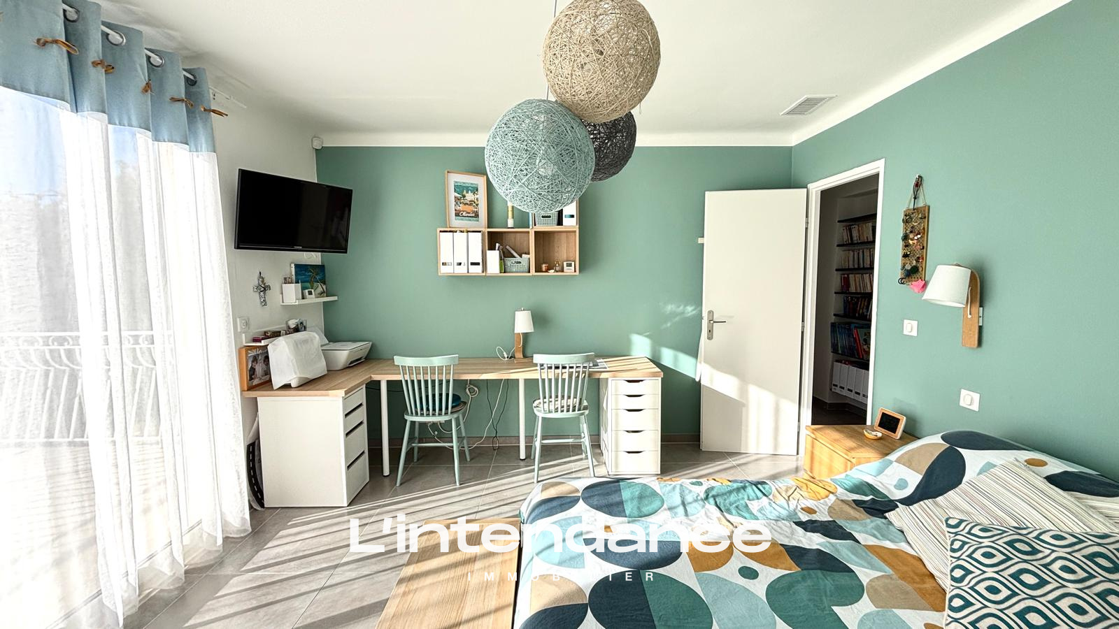 Au rez-de-chaussée, une chambre avec placard, une salle d’eau et un WC indépendant permettent d’envisager une suite parentale ou une chambre d’amis.